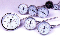 雙金屬溫度計是基于繞制成環性彎曲狀的雙金屬片組成。一端受熱膨脹時,帶動指針旋轉,工作儀表便顯示出熱電勢所應的溫度值。 |